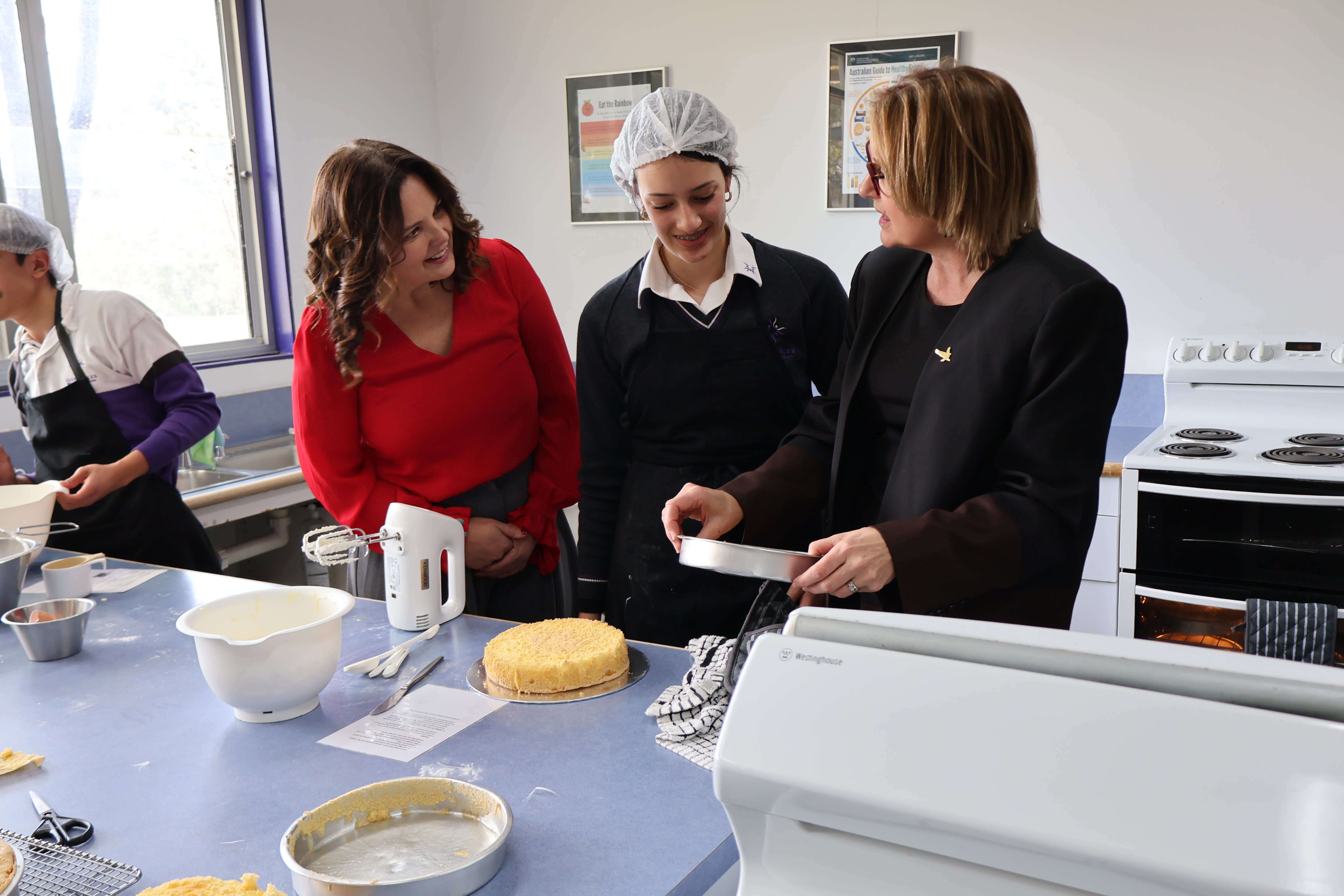 One stop included a Food Technology class, where students were completing a practical assessment, baking sponge cakes while also being formally assessed. Despite the unexpected visitor, students remained focused and proud to show their skills in action.