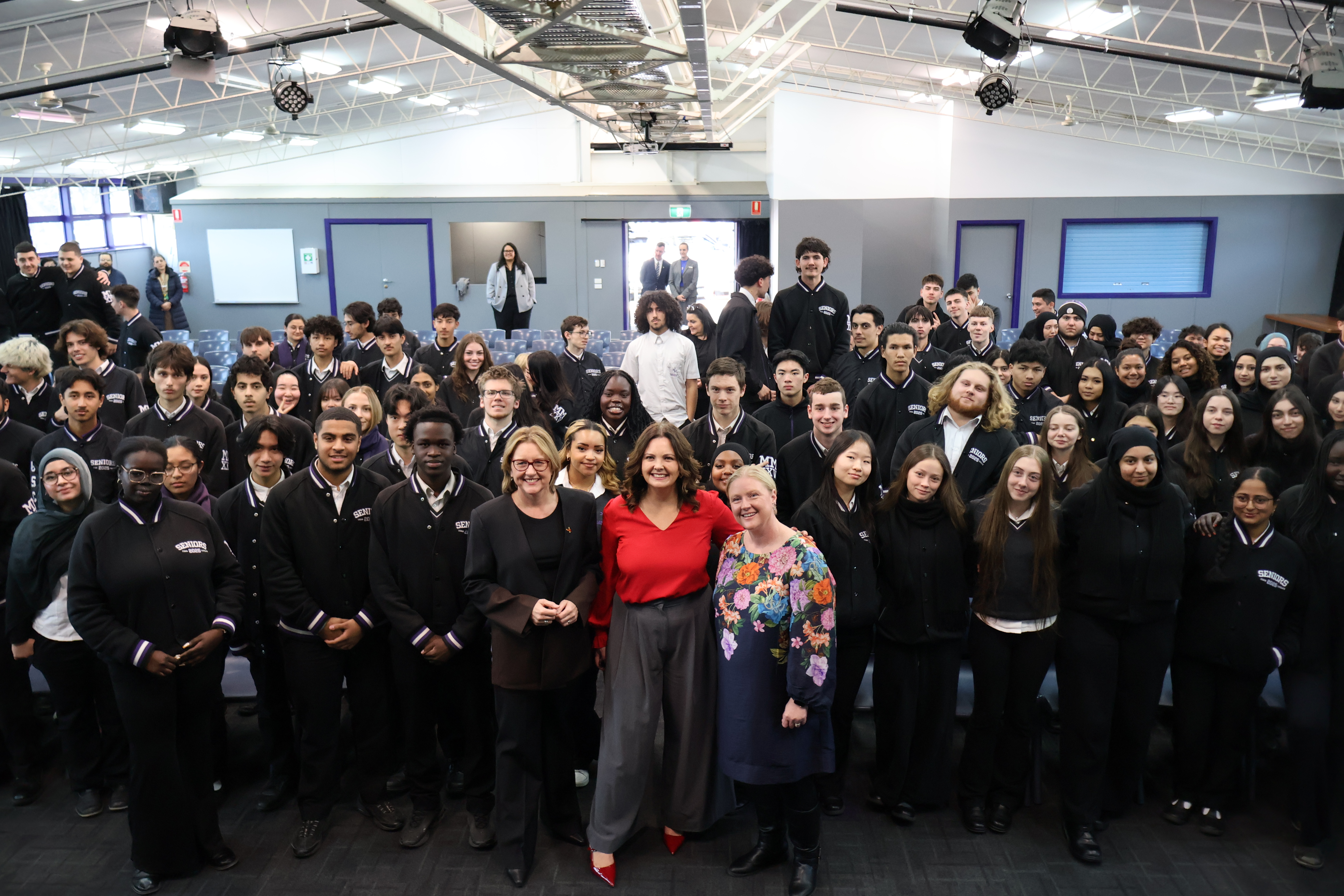The Premier of Victoria, Hon. Jacinta Allan, recently made a surprise visit to Gleneagles Secondary College, fulfilling a promise made earlier in the year. Six Year 12 students had met the Premier at an African Gala Dinner, where an invitation to visit the school was extended and to the students' surprise, the visit took place during their Year 12 assembly.